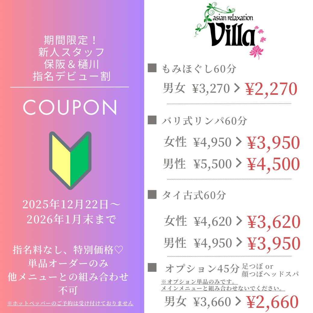 新人スタッフ 保阪 ・ 樋川 指名 デビュー割