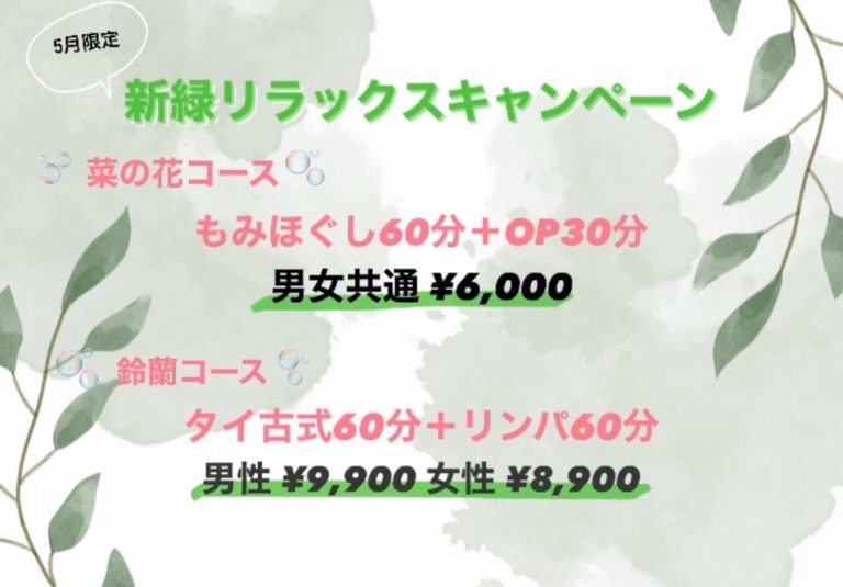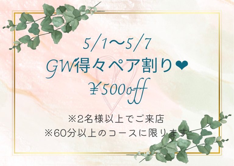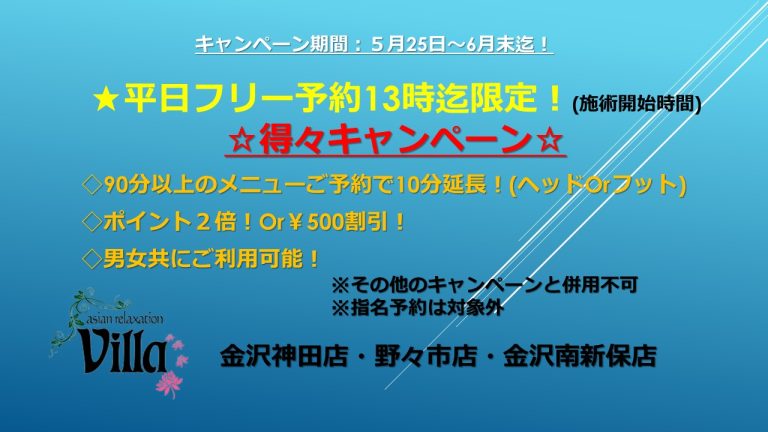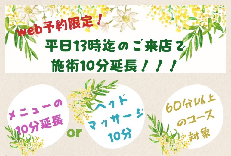 ★平日フリー予約13時迄限定!(施術開始時間)☆得々キャンペーン☆