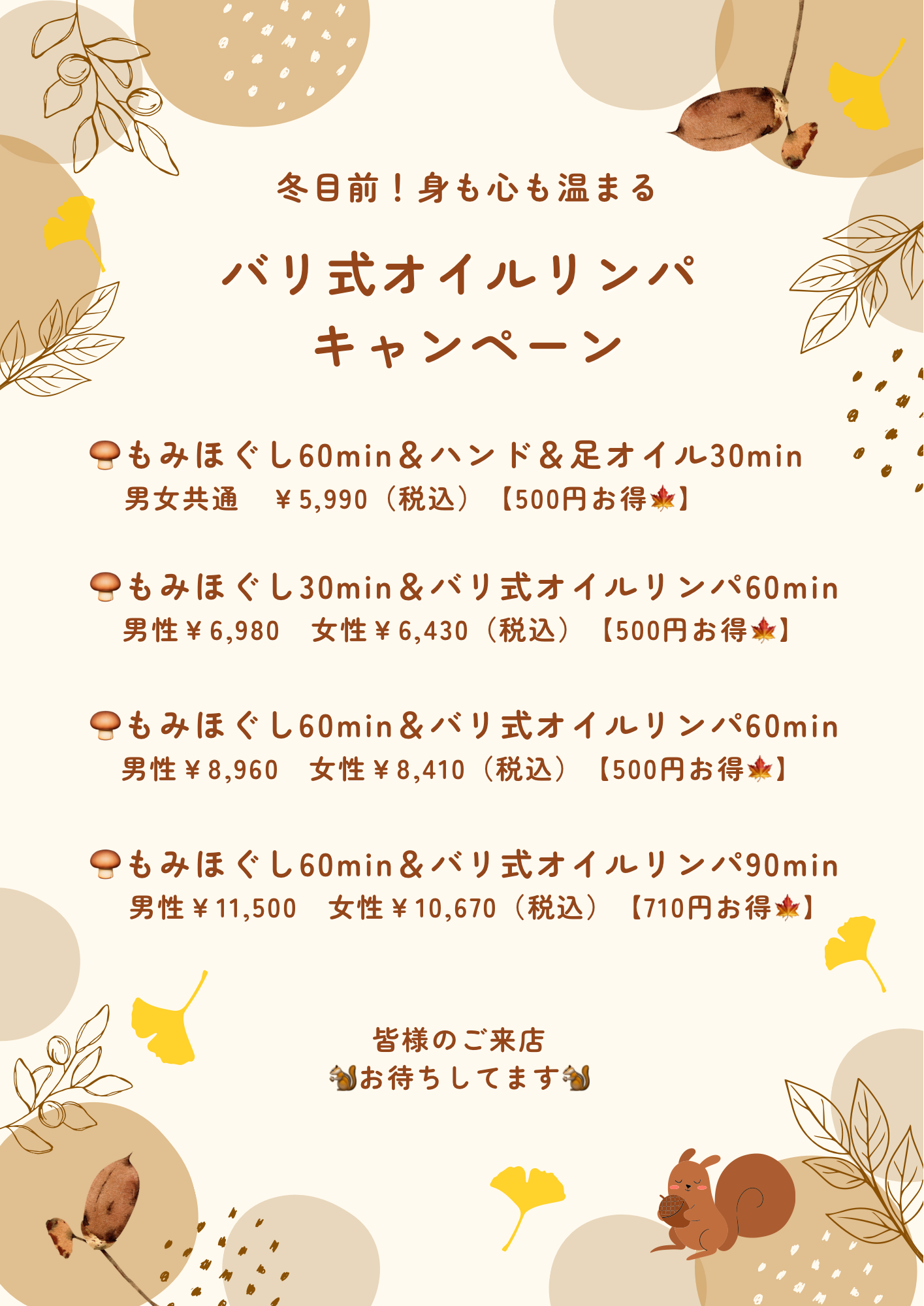 寒くなるこれからの季節、ぜひバリ式オイルリンパで身も心も癒してください☺️