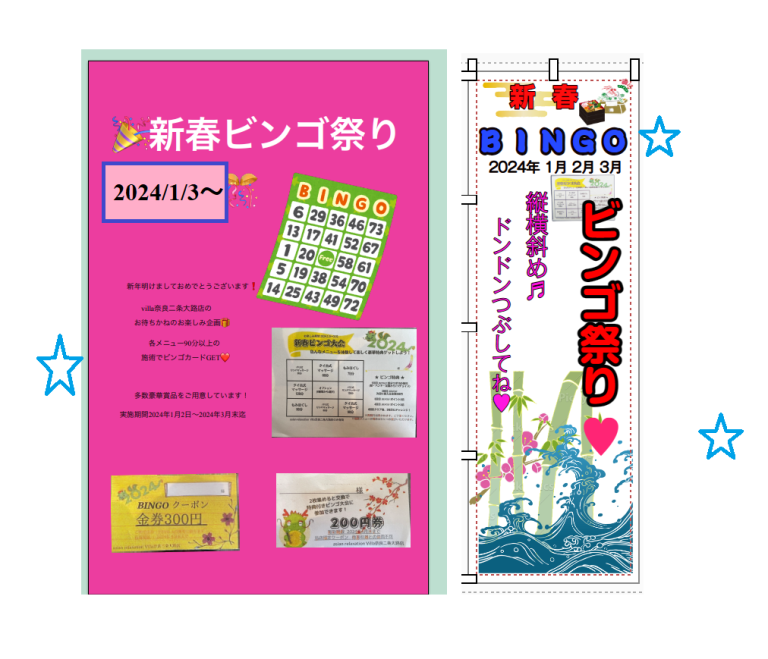 【通知】先行してビンゴ台紙配布開始🎵 2024年 1月~3月🌸新春ビンゴ祭り🌸開催(^^♪✨