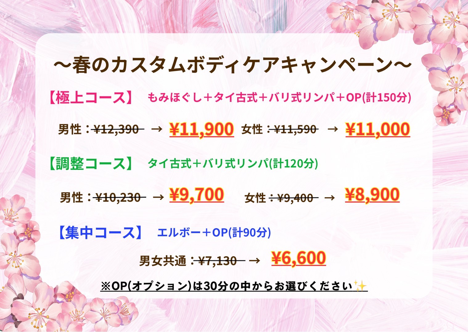 ほぐし+タイ古式+リンパ+オプション(配分自由150分)
