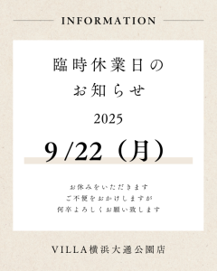 ◎9月22日(月) 店舗内整備のため、終日営業を休ませていただきます