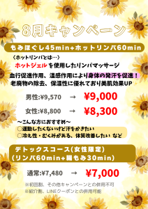 【もみほぐし45min+ホットリンパ60min】
