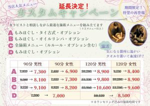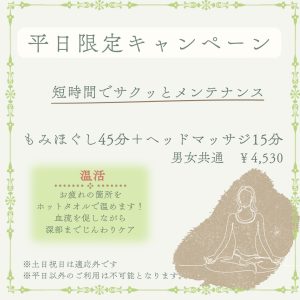 • ⏰ 平日限定キャンペーン(ホットタオル付)
