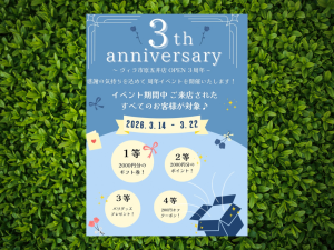 • 【3周年記念イベント開催】