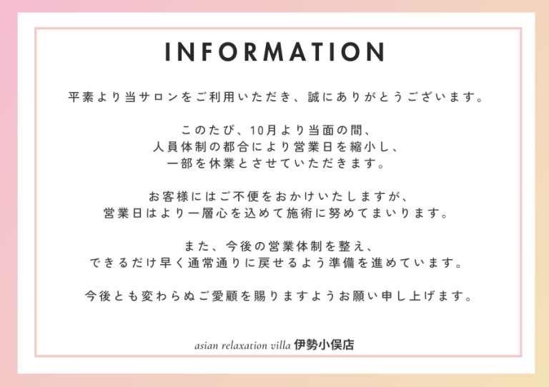 人員体制の都合により営業日を縮小し、
