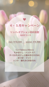 • 【4・5月キャンペーン】リンパ+オプション詰め放題120分コース