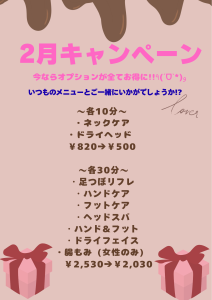 • 💗🍫2月キャンペーンのお知らせ🍫💗