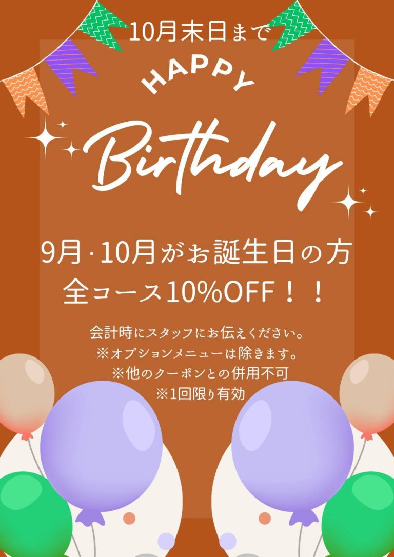 9-10月がお誕生月🎂の方にもお得なクーポンをご用意しております。