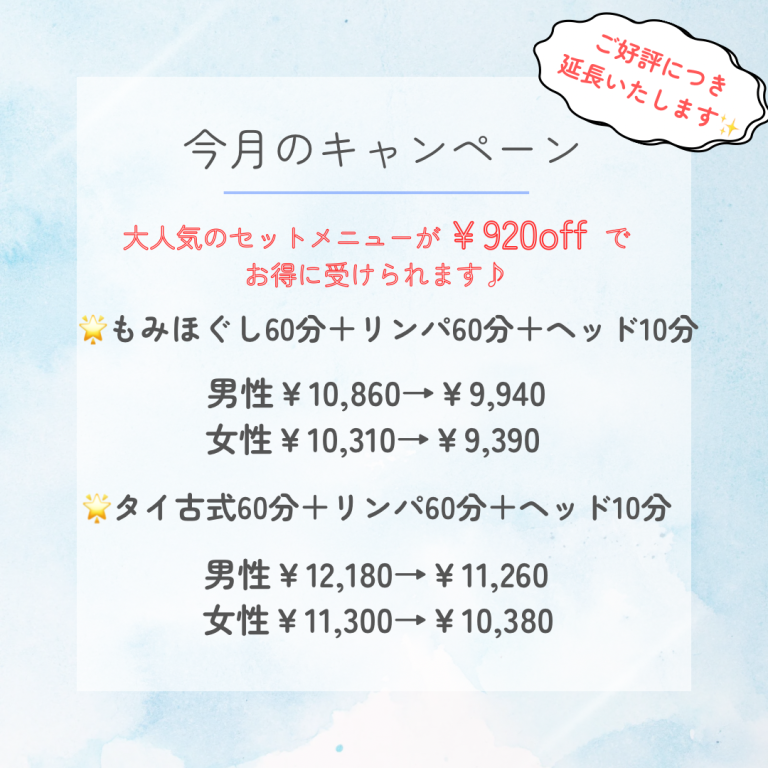 🌰10月キャンペーン 大人気のロングコースにヘッドマッサージが無料で受けられるお得なキャンペーンです(^^)/ お身体をほぐし・伸ばしながら、リンパマッサージで老廃物を流し血流の循環を整え全身すっきりさせましょう💪🏻 【リアルタイム☆最新空き情報】