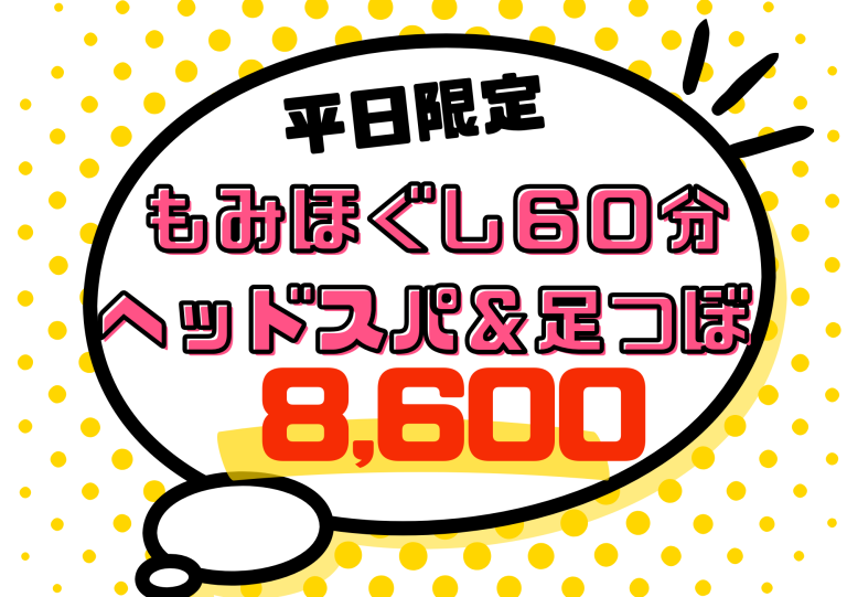 【690円OFF!!】もみほぐし60分 3960円⇒3270円