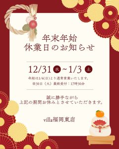 年末年始お休みのお知らせ