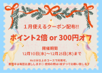 1月にご利用可能!【ポイント2倍】or【300円OFF】選べるクーポン🎟️を