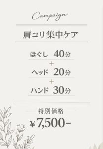 「肩凝り集中ケア」を是非🌷✨
