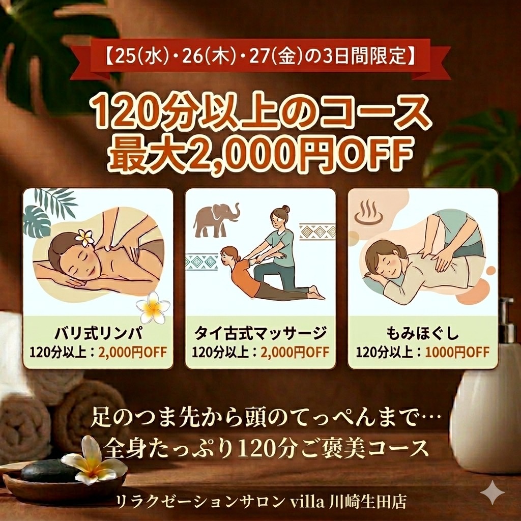期間中、人気の120分ロングコースを特別価格でご案内いたします。