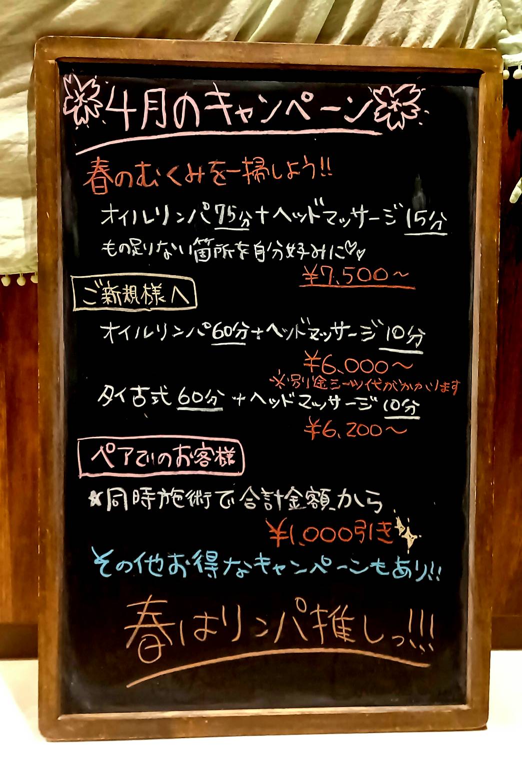 お二人での同時施術で、合計金額から【1,000円OFF】いたします。