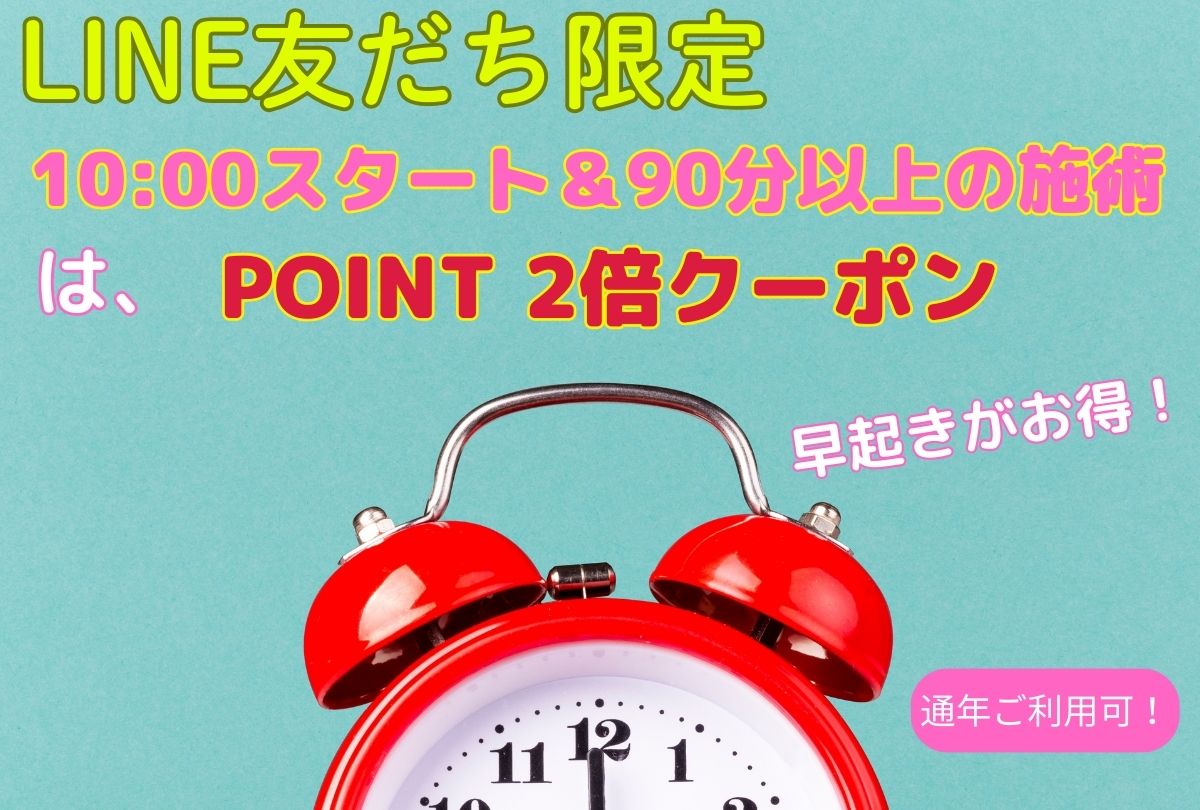 ・10:00スタートで90分以上の施術が対象です。