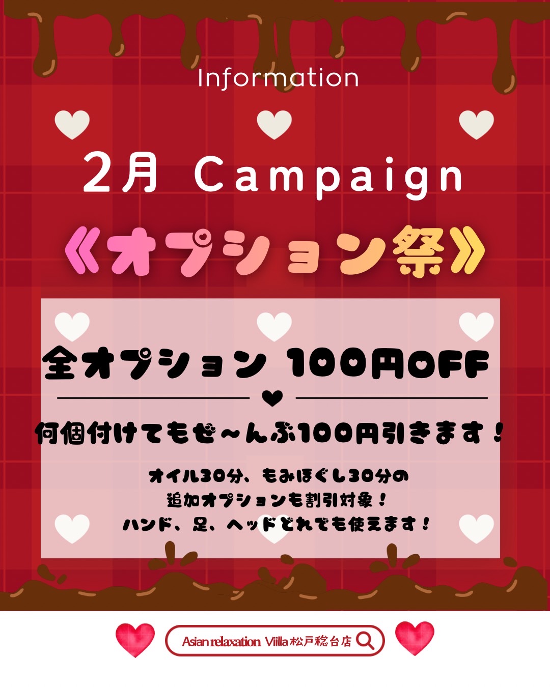 オイル30分、もみほぐし30分の追加オプションも割引対象。