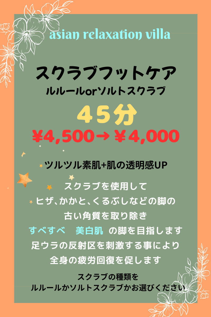オプションメニューにありますスクラブを使用するスクラブフットケアのキャンペーンと