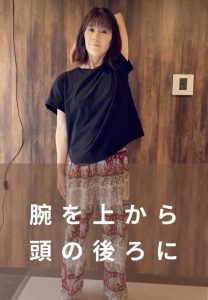 頭の上で肘をつかんで