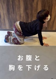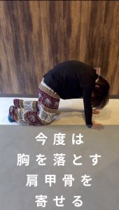 ・息を吸いながら、肩甲骨を寄せて体幹部を下に降ろす