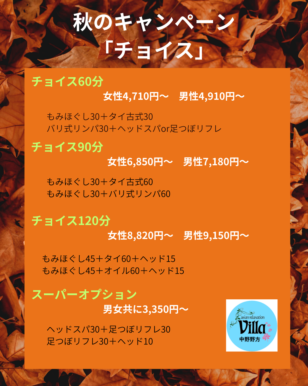 従来のメニューにはない、時間配分であなた好みの施術をチョイスしませんか?