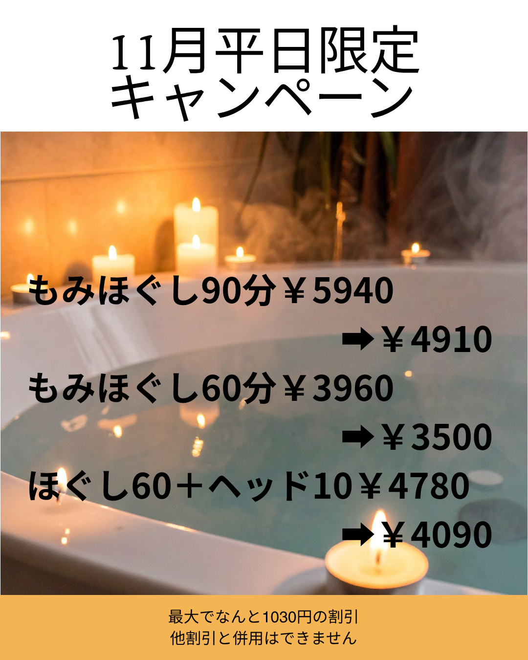 💆♂️ もみほぐし60分 通常 3,960円 → 3,500円(460円OFF)