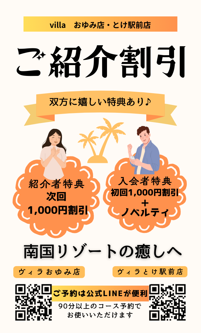 お友達やご家族をご紹介いただいたら1000円引き➕ノベルティプレゼント🎁