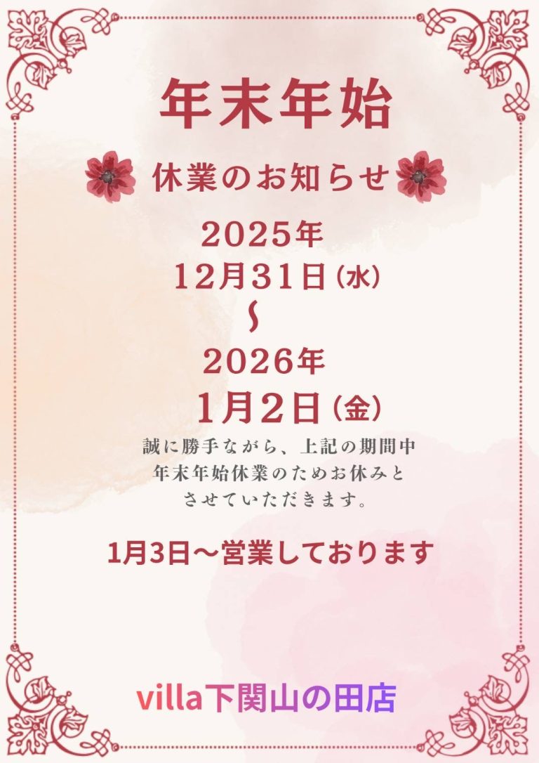 年末年始休業お知らせ