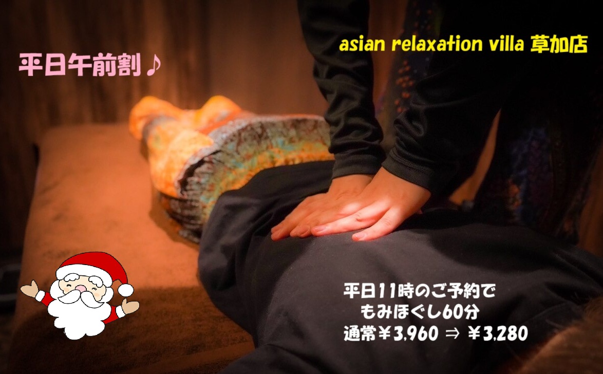 平日11時のご予約をいただきました「もみほぐし60分」を通常3,960円ですが、初回と同額の3,280円にてご案内をしております。平日お昼までのお時間帯を有効に、そして、お得にお過ごされてください。きっと、施術後は身も心も軽くなると思います…♪