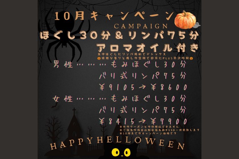 🎃ほぐし30分+リンパ75分(アロマオイル付)