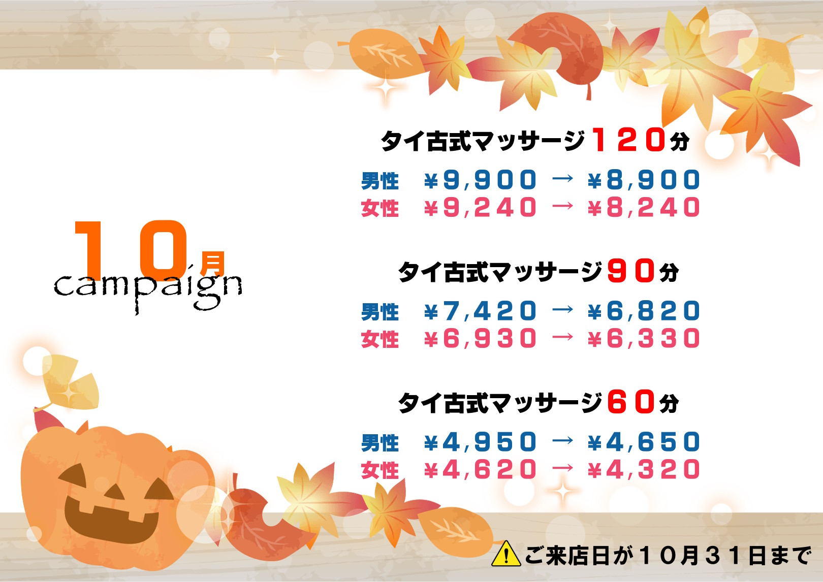 🎃タイ古式120分 1000円off‼️