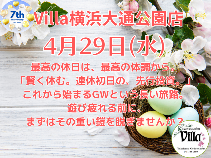こんにちは。asian relaxation villa 横浜大通り公園店です。