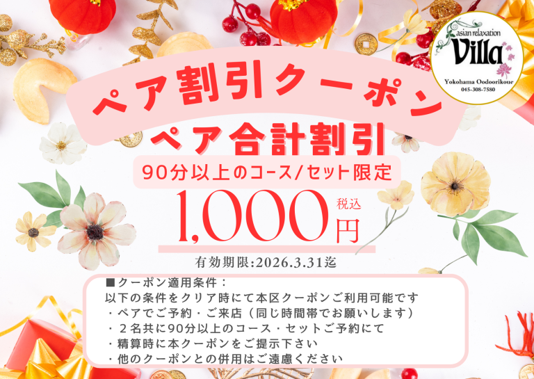 LINE友達限定「ペアでご予約・ご来店 90分以上のコース/セット限定」~3/31迄