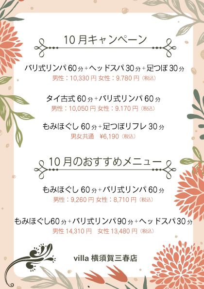 🍁10月のおすすめキャンペーンメニューのお知らせ🍁