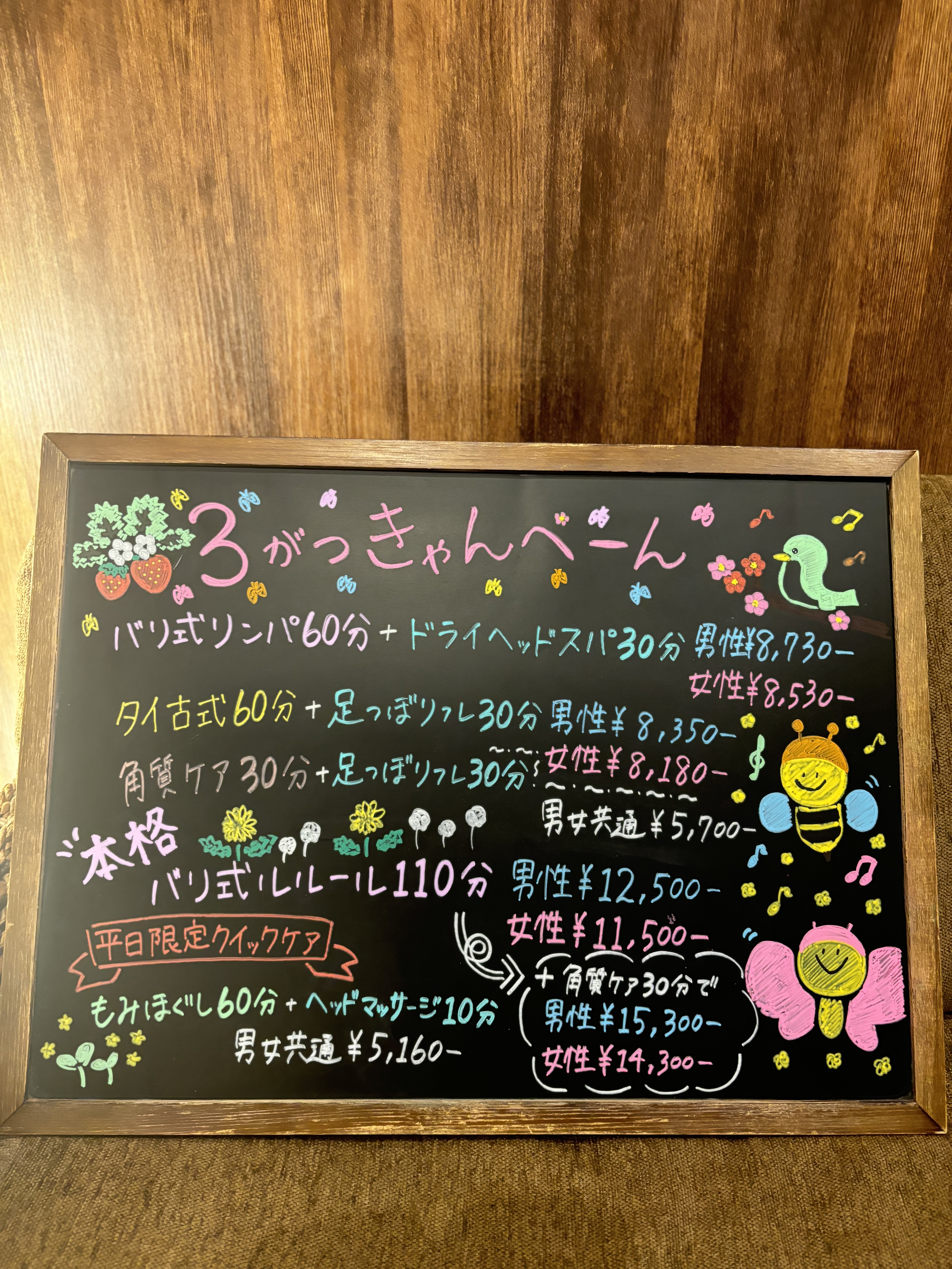 【もみほぐし60分+足つぼ30分+ヘッドスパ30分】